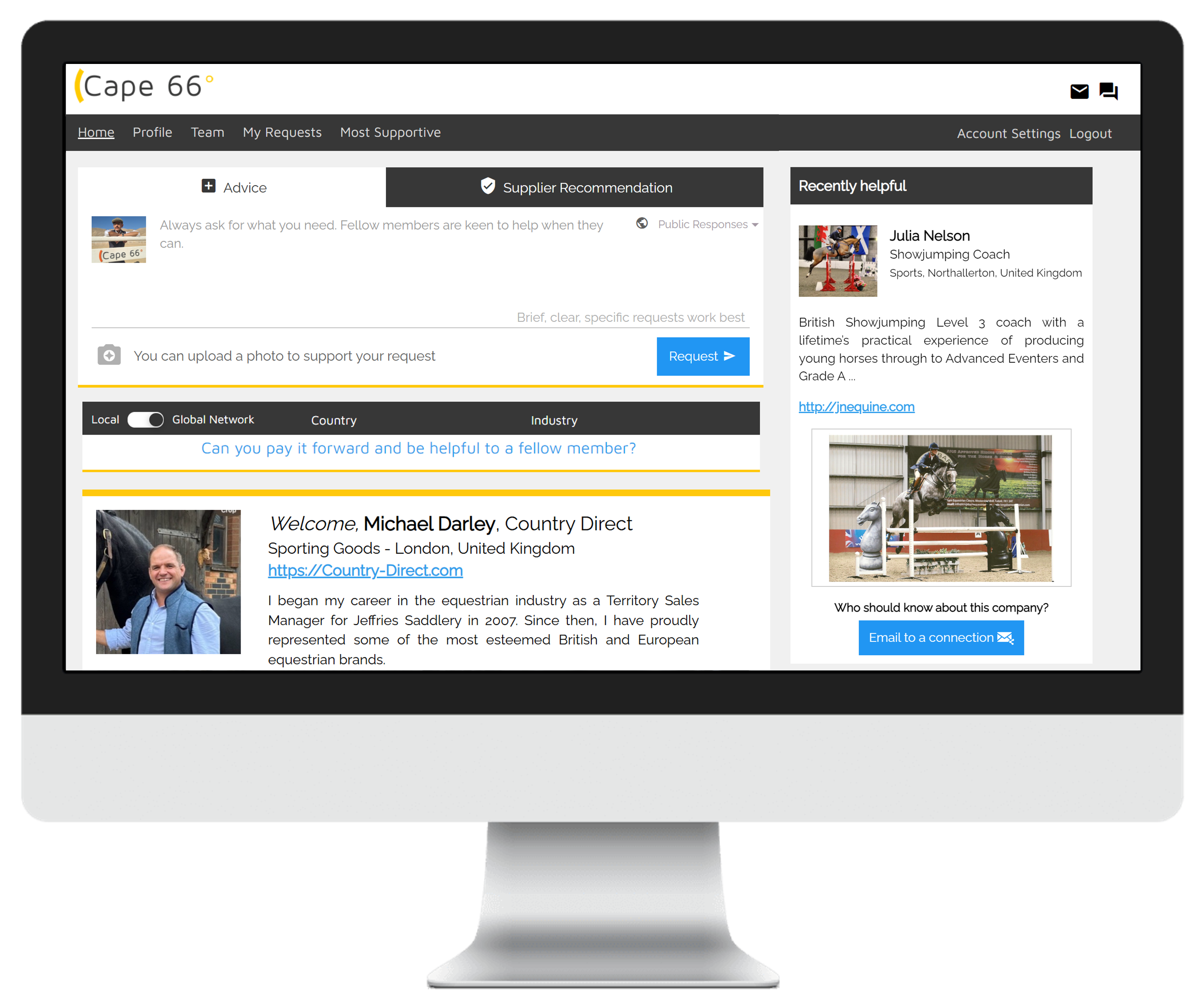Valuable relationships are built on goodwill. Every time you share your experience or receive support, you will gain a connection with a fellow Cape 66° member.